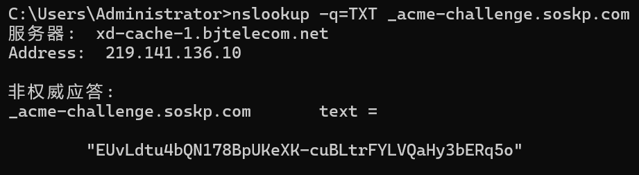 std::wstring domain = L"_acme-challenge.soskp.com";  // 使用宽字符串,DnsQuery 需要